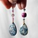 **藍銅礦**手工磨製大水滴墜,絲絲細膩的**靛藍、緋紅**紋理遍布,藍銅礦宛如畫布,紀載大地母親孕育億萬年的紋理。
