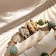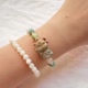 每一顆珠子皆由職人手工精挑,搭配金色點綴,整體配色高雅柔和。