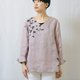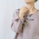 開きすぎないVネックのブラウス、身頃はゆったりしているので