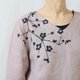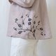 グレーがかったくすみピンクの地色に墨の濃淡で描いた枝梅。