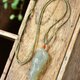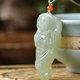 **〔 簡介 〕:**一款非常精緻漂亮的和田玉財神吊墜,寓意:吉祥如意,雕工精緻,上身簡單大方,尺寸約:48.1*19.7*10.8mm,重:16.6克。搭配純手工原創鏈子,附送權威國檢鑑定證書。