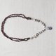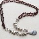 白地に黒いシダ模様の入ったデンドライトオパールをポイントにパールとガーネットで作ったネックレスです