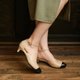 【接單手工製】拚色踝帶優雅跟鞋_T1-22805L - 高跟鞋/跟鞋 - 真皮 卡其色