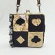 選用黑色天鵝絨和金色鑽石絨,由手工繪製並剪裁出撲克花色造型,交錯拼接在不同色塊上,營造出鮮明的對比和層次感。