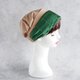 鮮やかなグリーンのサテンをキルティングに仕立てた、大人の華やかさが漂うヘアターバンです。