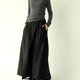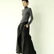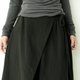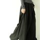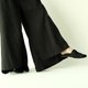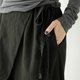 寬版的前片綁帶寬褲,正面看有圍裙感的一片式設計,也讓腰間平順,後方則是鬆緊帶可以輕鬆穿著,在褲腳上則是做了前短後長剪裁的細節,走動時可看出前後俐落的段差。
