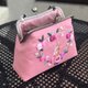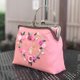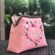 - Hand-embroidered kisslock bag. Pink linen fabric and cotton lining inside. There is a chain that can be attached to the purse to carry them over the shoulder or handheld. Dimension: Width 23 cm Height 18 cm Depth 9 cm The product is handmade, so the size is approximated. Thank you for visiting a small business.