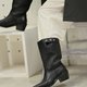 - 立體鞋頭設計復古氣息濃厚 舒適的短褲與牛仔靴筒高的比例恰到好處 超軟牛皮筒圍有二段式銀釦 可以調整搭配需要的寬窄