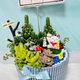 莫蘭迪藍質感客製多肉組盆,搭配客製設計鋁線花插及賀卡。