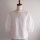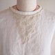前身頃中心部分と、衿ぐりに、ベージュ色のアンティークレースを使用しています。