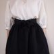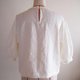 袖つけ位置、袖口共に、ギャザーもたっぷりととってあり、ゆったりとしていますが、とろんとした生地のため、比較的すっきりとしたシルエットになると思います。