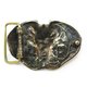 Buckles are cast from brass. After casting, each buckle is processed manually. After processing, the buckle is covered with a patina and polished one more time.