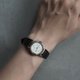 上質なブラックレザーストラップが全体を引き締め、日常から特別なシーンまで幅広く活躍する一本です。