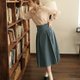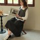 依然是為了避免顯胯寬做了縫住一段的設計,搭配襯衫來穿很顯腰身,建議是像我們搭的一樣用一些層次感的深灰淺灰來搭配,營造高級的秋冬艺文感,灰藍色可以和灰粉色搭,帶有新意又不失優雅。