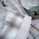 NOTICE: 粉藍色款之兩袖以及粉紅色款之右袖,用了另一色系格子二重織布料,見圖示。