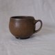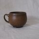 森汐- 咖啡杯、馬克杯、手把杯-1 陶土拉坯成形,褐色釉面有深邃的流動紋路,釉厚處浮現藍點,圓潤窄底的漂浮杯形。