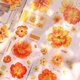 - 鎏金漫漫 復古黃橙花卉和紙PET模切手帳貼膠帶