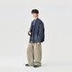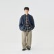 2025AW牛仔外套以道袍領設計為靈感,打破傳統牛仔外套的 “古板感”, 創新出未來感街潮設計美學。採用全棉面料製成,通過重酵水洗工藝,將深藍牛仔布置於特殊酵素中反覆浸潤、打磨後賦予面料「軟而不塌」的質感。外套口袋處的MONKEY WASH,通過手工打磨出漸變磨白,形成做舊復古質感,著重突出強烈的個人風格。版型方面採用寬鬆剪裁,對不同身材的相容度大大增加,同時給予內搭足夠空間,露出內搭展現層次穿搭的百搭單品。
