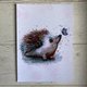 刺猬画, 水彩画 作者签名准备装运 尺寸21乘30厘米