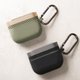 - 不鏽鋼扣環,上蓋不鏽鋼材質的科技俐落感,殼身矽膠材質更緊密貼合耳機