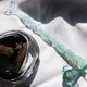 這次是湖水色版本,筆尾是人魚尾巴,筆身是流水紋像海水流到海洋底,這次用上有點像寶石💎形的冰種藍色蛋白石,寓意深海中多元生命力的世界。