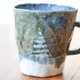 這只馬克杯以美國進口半瓷半陶手捏成型,透過高溫燒成展現出堅固與耐用的特性,能安全盛水,成為日常飲用的理想選擇。善用釉藥的特性,繪出夢幻的森林雪景,杯身以深藍綠色與白色為基底,局部流動的深淺交疊變幻多端,呈現魔幻森林。宛如森林雪景般渲染,帶出自然侘寂的手感美學。