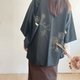 日本製和風印花薄款黑色古著羽織和服外套-H307