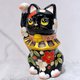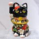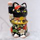 日本清水燒招財貓 色繪 黑地 松竹梅