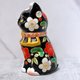 這款招財貓舉起右爪👋,象徵招財進寶💰,臉部繪有紅色與白色的花卉裝飾🌺增添喜慶氛圍。