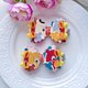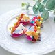 熊頭有呆萌感~蝴蝶結內裡挑了莓果色的不織布,搭配多彩熊頭就成了繽紛的髮夾~