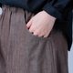 因為有適度的錐形剪裁,反摺搭配應該會很可愛。布料也很紮實,感覺穿一整天也不會變形。褲長在腳背處有一點堆疊感,腰部尺寸剛好。