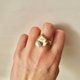 リングのサイズは17mm (ブランドにもよりますが一般的に13号)ですが、アジャスタータイプなのでサイズを広げることもできますので、どなたでもご着用頂けます。