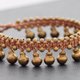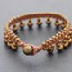 這款手工編織手鍊採用駱駝色棉線蠟編織而成,並與小黃銅珠和鈴兒鈴鐺編織在一起。用銅鐘封閉