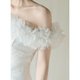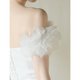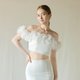 以輕盈透明的網紗一朵朵製作出花瓣形狀,如同披上花束般,打造出浪漫且夢幻的視覺感。