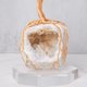 採用純天然水晶礦石製成,晶洞的原礦外表就像一顆小石頭,在切開之後可以發現瑪瑙、水晶的結晶體,盆狀的外觀內部佈滿晶礦的結晶,就像是天然的聚寶盆一般,為您的生活帶來豐盛與滿滿的財運。
