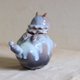手捏小雕塑,臉部用化妝土及油彩上色,身體噴2-3種釉色,隨著造型流動。
