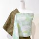 純手作日本二重紗灰底綠色幾何線條古董六角彩色雜點絲質圍巾披肩