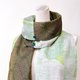 純手作日本二重紗灰底綠色幾何線條古董六角彩色雜點絲質圍巾披肩 - 圍巾/披肩 - 絲.絹 綠色