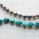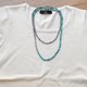 ターコイズの部分は1石づつ結び目を作って仕立てています