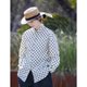 波點襯衫的明媚會讓你想欣然起舞。經典大波點的布種,布料不用多介紹了,長絨棉布,用了浮水印的傳統印花工藝,區區一塊印花布,要保持風格,也不是一件容易的事情,不能沾色,還需要保持布料松馳的風格,這些幾句就能表達清楚的事情,也是要經歷過四個工廠來配合完成的。