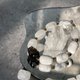 綠松石之一,在白色的晶石上,分佈了不規則的銀色脈紋和斑塊,風化的程度較高。