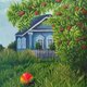 在這幅畫中,我捕捉到了秋天伊始的瞬間。白天,明媚的陽光溫暖著前花園裡遲開的蜀葵,也照亮了成串的花楸果。夜晚漸涼。孩子們已經離開家去城裡上學了。一個被遺忘的亮球躺在家附近的小路上。我親愛的祖母還來不及把它收起來。它像徵著牢不可破的紐帶,也像徵著快速團聚的承諾。球躺在那裡,提醒著我們,快樂的夏天終將到來,就像孩子一樣。