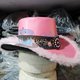 Add a touch of charm and whimsy to your outfit with this handcrafted Pink Leather cowgirl Hat, beautifully accented with a soft pink faux-fur brim and a floral embroidered hatband. This unique piece blends western style with feminine elegance, making it the perfect statement accessory for festivals, cosplay, themed events, photo shoots, and collectors of handmade leather hats.