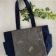 内生地、持ち手、ポケット、底はネイビーの日本製11号帆布とコットンシーチング生地をを使用しています。
