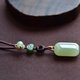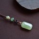 搭配咖啡色線繩手工編制,搭配點綴小葉紫檀雕刻件,搭配碧玉雕刻如意,搭配同色系老型珠製作珠扣!