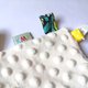 多種布邊材質,能刺激寶寶腦力發展。塑膠球的聲響與內裡的響紙,讓寶寶專注在安撫巾上面,達到安撫與集中專注力的效果。