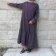 袖口に並んだ小さな貝ボタンがポイントの、ローウエストのシルエットのワンピース。