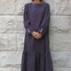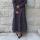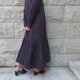 カフスの部分は10cmとロングタイプで小さな貝ボタンが並び、クラシカルでやさしい雰囲気です。ローウエストでの切り替えはギャザー部分が40cm丈あり、ボリュームがあるのでバランス良く着られます。