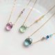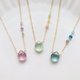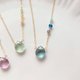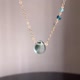 並將與螢石色調相配的小寶石串成三粒連在項鍊的鍊條上。