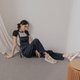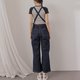- - 交錯細帶吊褲 - 中性風前口袋設計 - 褲型長度適中好配鞋